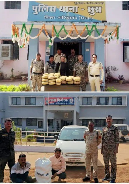 गरियाबंद, 15 नवंबर। जिले की पुलिस ने नशा तस्करी पर कड़ी कार्रवाई करते हुए दो अलग-अलग मामलों में कुल 47.958 किलो गांजा, दो चार पहिया वाहन और चार आरोपियों को गिरफ्तार किया है। वरिष्ठ अधिकारियों के निर्देश पर अवैध गांजा, हीरा और वन्यजीव तस्करी पर रोक लगाने हेतु सभी थाना क्षेत्रों में पेट्रोलिंग और मुखबिर तंत्र को सक्रिय किया गया था, जिसके तहत 14 नवंबर को छुरा थाना पुलिस को सूचना मिली कि सफेद रंग की तवेरा (सीजी 07 एम 4128) से दो व्यक्ति ओडिशा से गांजा लेकर कोसमी की ओर जा रहे हैं। पुलिस और साइबर सेल की टीम ने पीपराही मोड़ के पास नाकेबंदी कर वाहन को रोका, जिसमें बैठे दुर्ग निवासी आरोपी राजू रजक उर्फ झगर और दिलीप साहू के कब्जे से 38 पैकेट में भरा 29.408 किलो गांजा, दो मोबाइल, 1200 रुपये नकद और वाहन जब्त किया गया। आरोपियों ने पूछताछ में बताया कि वे यह गांजा ओडिशा से खरीदकर दुर्ग में बेचने ले जा रहे थे। दोनों के खिलाफ एनडीपीएस एक्ट की धारा 20(बी) के तहत अपराध दर्ज कर न्यायिक हिरासत में भेज दिया गया है। इसी दिन फिंगेश्वर थाना क्षेत्र में मेन गेट के पास वाहनों की चेकिंग के दौरान कार (सीजी 04 बी 0831) को रोककर तलाशी लेने पर रायपुर निवासी छम्मन साहू और भिलाई निवासी किशन निषाद के कब्जे से एक बोरी में रखा 18.550 किलो गांजा, दो मोबाइल और कार जब्त की गई। दोनों ने स्वीकार किया कि वे गांजा ओडिशा से दुर्ग सप्लाई करने जा रहे थे। पुलिस ने इनके खिलाफ भी एनडीपीएस एक्ट की धारा 20(बी) के तहत कार्रवाई कर जेल भेज दिया है। दोनों मामलों में अन्य संलिप्त व्यक्तियों की तलाश जारी है और पुलिस का नशा विरोधी अभियान आगे भी जारी रहेगा।