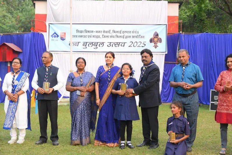 भिलाई, 18 नवम्बर। भिलाई इस्पात संयंत्र (बीएसपी) के शिक्षा विभाग और भारत स्काउट गाइड जिला संघ भिलाई के संयुक्त तत्वावधान में मैत्री बाग में 40वाँ कब-बुलबुल उत्सव धूमधाम और उत्साहपूर्ण माहौल में संपन्न हुआ। मुख्य जिला आयुक्त और महाप्रबंधक (शिक्षा) शिखा दुबे ने ध्वजारोहण कर कार्यक्रम का शुभारंभ किया। इस वर्ष के उत्सव में इंग्लिश मीडियम मिडिल स्कूल, सेक्टर-6 को विजेता घोषित किया गया। जिला आयुक्त (गाइड) और प्राचार्या, बीएसपी सीनियर सेकेंडरी स्कूल सेक्टर-10, सुमिता सरकार ने स्वागत भाषण में सभी प्रतिभागियों को शुभकामनाएँ देते हुए कहा कि यह मंच बच्चों में रचनात्मकता और आत्मविश्वास को बढ़ाने में सहायक है। बीएसपी की विभिन्न शालाओं से आए लगभग 200 कब-बुलबुलों ने विविध प्रतियोगिताओं में भाग लिया। ध्वजारोहण और प्रार्थना के बाद बच्चों ने सामूहिक नृत्य, चित्रकला, विविध वेशभूषा, गंध-पहचान, स्वाद-पहचान और गाँठ-बाँधो जैसी स्पर्धाओं में अपनी प्रतिभा का प्रदर्शन किया। सामूहिक नृत्य में प्रकृति, पशु-पक्षी और परियों पर आधारित प्रस्तुतियाँ आकर्षण का केंद्र रहीं। बुलबुल-ट्री प्रतियोगिता में प्रतिभागियों ने विद्यालय-निर्मित सुसज्जित बुलबुल-ट्री के साथ घेरा गीत प्रस्तुत किया। साहसिक गतिविधियों के अंतर्गत कब छात्रों ने 12 फीट ऊँची रस्सी पर चढ़ने का प्रदर्शन किया, वहीं बुलबुल छात्राओं ने 15 मीटर रस्से पर संतुलन दिखाया। सभी प्रतियोगिताओं का मूल्यांकन शासकीय विद्यालयों के अनुभवी कब-बुलबुल विशेषज्ञ निर्णायकों द्वारा प्रस्तुति, समय, गणवेश और कौशल के आधार पर किया गया। समापन समारोह में मुख्य चिकित्सा अधिकारी (चिकित्सा एवं स्वास्थ्य सेवाएँ) डॉ. उदय कुमार मुख्य अतिथि और महाप्रबंधक (निगमित सामाजिक उत्तरदायित्व) शिवराजन नायर विशिष्ट अतिथि के रूप में उपस्थित थे। अतिथियों का पारंपरिक स्कार्फ पहनाकर स्वागत किया गया। उन्होंने विद्यालयों द्वारा तैयार बुलबुल-ट्री का अवलोकन किया और समापन सत्र में प्रस्तुत समूह नृत्य एवं विविध वेशभूषा की सराहना की। मुख्य अतिथि ने कहा कि ऐसे कार्यक्रम बच्चों में अनुशासन, साहस, सकारात्मक दृष्टिकोण और नेतृत्व क्षमता विकसित करते हैं। उन्होंने विजयी प्रतिभागियों को पुरस्कृत किया। समारोह का संचालन सहायक प्रबंधक (शिक्षा) मनीष तिवारी ने किया, और धन्यवाद ज्ञापन भिलाई विद्यालय सेक्टर-2 के प्राचार्य विजय सिंह पवार ने दिया। कार्यक्रम के सफल संचालन में विभिन्न विद्यालयों के प्रमुखों, शिक्षकों और शिक्षा विभाग के अधिकारियों-कर्मचारियों का महत्वपूर्ण योगदान रहा।