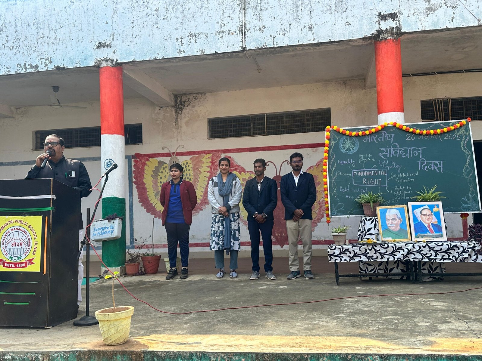 *बकावंड।* डीएवी मुख्यमंत्री पब्लिक स्कूल उलनार में प्राचार्य मनोज शंकर के मार्गदर्शन में आज 26 नवंबर को भारतीय संविधान दिवस मनाया गया।