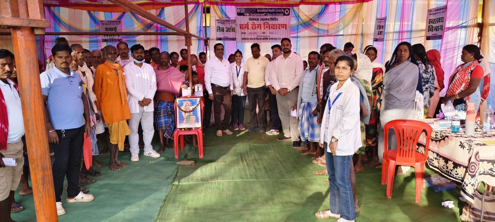 बस्तर ब्लाक के ग्राम पंचायत मधोता 02 कुंडगुड़ा में ग्रामीणों तक स्वास्थ्य सुविधा पहुचाने के लिए एसबीआई संजीवनी एवं परिवर्तन समाज विकास समिति के सहयोग से निःशुल्क स्वास्थ्य चर्मरोग एवं सामान्य जांच शिविर का आयोजन किया गया। शिविर का शुभारंभ सरपंच श्री ईश्वर मंडावी जी , एम॰डी॰ डॉक्टर सी के मिश्रा जी तथा जिला समन्वयक श्री सूरज पटनायक ने दीप प्रज्वलित कर शुभारंभ किया।
