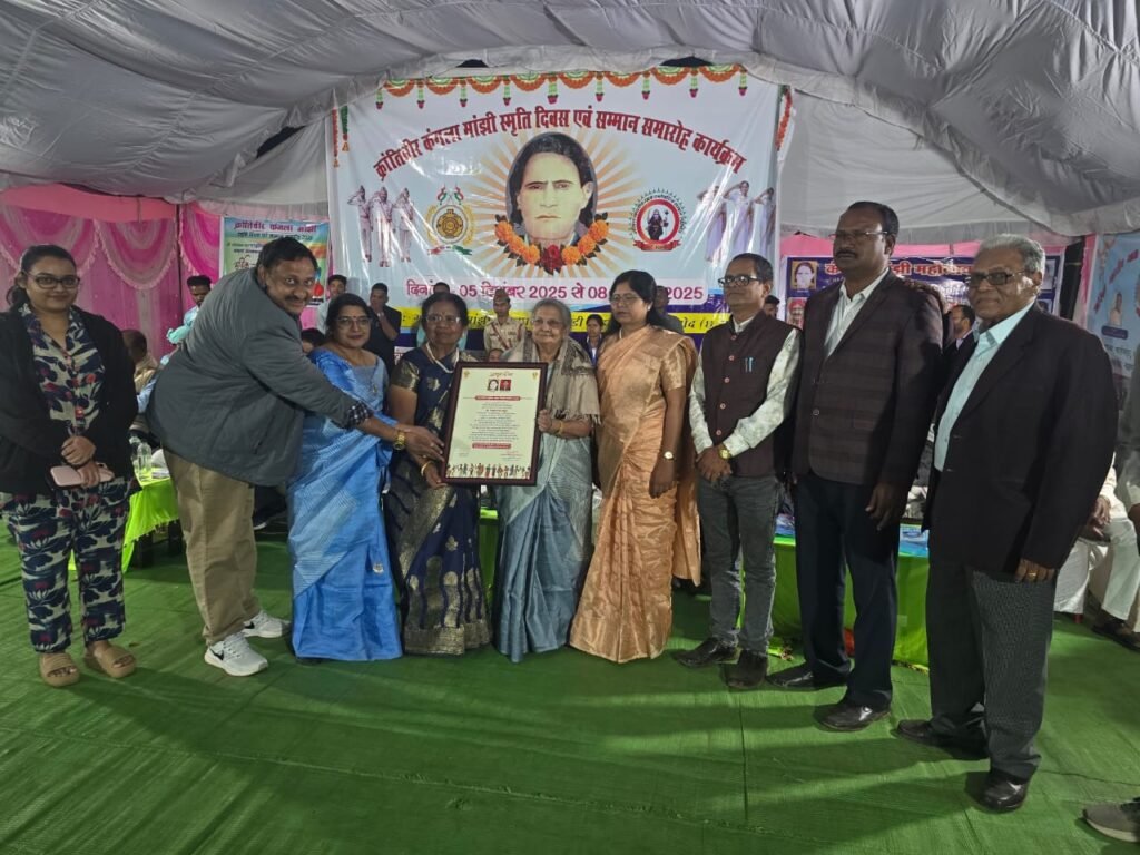 देवरी में गांव में जन्मे देश की रक्षा के लिए शहादत देने वाले वीर सपूत दुर्वासा लाल निषाद सम्मान 2025 राष्ट्रीय स्तर की प्रसिद्ध लेखिका डॉ. शिरोमणि माथुर को प्रदान किया गया। डॉ. शिरोमणि माथुर ने अपने गृह नगर राजहरा पर शोधपरक ग्रंथ लिखकर माटी का ऋण चुकाया है। इसीलिए वे लगातार वंदित, अभिनंदित हो रही हैं। डॉ. शिरोमणि माथुर प्रसिद्ध समाजसेविका और श्रेष्ठ शिक्षाविद भी हैं।अब तक वे 11 श्रेष्ठ ग्रंथों का लेखन कर चुकी हैं और उम्र के इस पड़ाव में भी उनकी कलम की धार पैनी बनी हुई है। डॉ. शिरोमणि माथुर अब भी साहित्य की सेवा में अनवरत लगी हुई हैं। डॉ. श्रीमती माथुर देश की विलक्षण लेखिका हैं। उनकी रचनाएं 65 साझा संकलन में संकलित हैं। यह पूरे देश के साहित्य जगत और साहित्य प्रेमियों के लिए गर्व की बात है कि गोल्डन बुक ऑफ वर्ल्ड रिकार्ड, वर्ल्ड वाइड बुक रिकार्ड्स एवं सेंट्रल प्राइड ऑफ इंडिया ने डॉ. शिरोमणि माथुर की साधना का सम्मान किया है। डॉ. श्रीमती माथुर द्वारा लिखित एक हजार दोहों का संकलन विशिष्ट काव्य संग्रह है। आध्यात्मिक रूचि की विलक्षण लेखिका डॉ. शिरोमणि माथुर आगे भी साहित्य जगत की समृद्धि के लिए नई पीढ़ी को प्रोत्साहित करते हुए और सतत लेखन कर अपार यश अर्जित करेंगी इस आशा के साथ यह सम्मान उन्हें डौंडी लोहारा क्षेत्र के ग्राम बघमार में 6 नवंबर को आयोजित कंगला मांझी महोत्सव 2025 में प्रदान किया गया। डॉ. शिरोमणि माथुर को यह प्रतिष्ठित सम्मान श्री मांझी अंतर्राष्ट्रीय समाजवाद आदिवासी सैनिक किसान संस्था नई दिल्ली की राष्ट्रीय अध्यक्ष राजमाता फूलोदेवी कांगे के हाथों प्रदान किया गया। इस अवसर पर शहीद दुर्वासा लाल निषाद के परिजन, अगसदिया परिवार के संस्थापक अध्यक्ष एवं प्रसिद्ध साहित्यकार डॉ. परदेशी राम वर्मा, कंगला मांझी सरकार के परिजन एवं अनेक ख्यातिलब्ध साहित्यकार, कवि और हजारों की संख्या में ग्रामीण उपस्थित थे।