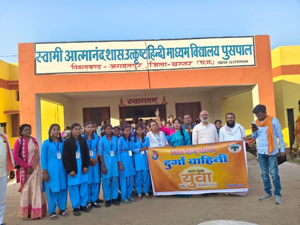ज्यादातर युवा ही नशे का शिकार हो रहे हैं।आज का युवा कल का भविष्य है इसी को देखते हुए विश्व हिंदू परिषद मातृशक्ति द्वारा समाज में तेजी से फैल रहे इस बुरी लत से युवाओं को बचाने एवं उन्हें जागृत कर नशे से होने वाली दुष्परिणामों से अवगत कराने के साथ नशे से मुक्त होने की जानकारी साझा की गई। स्वामी आत्मानंद शासकीय उत्कृष्ट हिंदी माध्यम विद्यालय पुसपाल और नानगुर विद्यालय में विद्यार्थियों के साथ चर्चा की गई व नशा मुक्त भारत की परिकल्पना को साकार करते हुए विकसित भारत में अपना योगदान देने के लिए तत्पर रहते हुए नशे जैसी बुराइयों से दूर रहने का संकल्प उन्हें दिलाया गया। इस अवसर पर विश्व हिंदू परिषद के विभाग मंत्री रवि ब्रह्मचारी, जिला मंत्री नवीन देवांगन, विश्व हिंदू परिषद जिला उपाध्यक्ष ज़बीता मंडावी, देवेंद्र कश्यप, विद्यालय के शिक्षक, शिक्षिका, और विद्यार्थी बड़ी संख्या में उपस्थित रहे, कार्यक्रम को सफल बनाने हेतु सभी का सहयोग रहा।