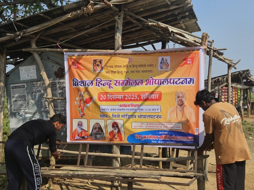 *भोपालपटनम।* नगर में आज शनिवार को हिंदू सम्मेलन समिति के तत्वावधान में भव्य हिंदू सम्मेलन का आयोजन किया जा रहा है। आयोजन को लेकर क्षेत्र में उत्साह का माहौल है। सम्मेलन में समाज के सभी वर्गों की सहभागिता की अपील की गई है।