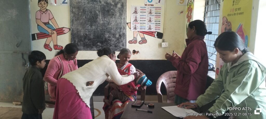 कार्यक्रम का शुभारंभ ग्राम पंचायत की उप सरपंच ज्योति बघेल द्वारा किया गया। इस अवसर पर उन्होंने उपस्थित ग्रामीणों से अपील करते हुए कहा कि पोलियो जैसी गंभीर बीमारी से बच्चों को सुरक्षित रखने के लिए पल्स पोलियो अभियान अत्यंत आवश्यक है और इसमें सभी का सहयोग जरूरी है। अभियान के दौरान सिस्टर आशा पांडे, आंगनबाड़ी कार्यकर्ता डोंगरीगुड़ा सुहाती कश्यप, मिनी आंगनबाड़ी कार्यकर्ता प्रेमवती कश्यप, मितानिन हस्ती कश्यप एवं मितानिन अनिता झाली ने सक्रिय भूमिका निभाई। इन सभी स्वास्थ्य कार्यकर्ताओं द्वारा घर-घर संपर्क कर तथा आंगनबाड़ी केंद्र में 0 से 5 वर्ष तक के बच्चों को पोलियो की दो बूंद दवा पिलाई गई। गांव की माता-बहनों एवं अभिभावकों के सहयोग से अभियान को सफल बनाया गया, जिसके परिणामस्वरूप लगभग 80 प्रतिशत लक्ष्य हासिल कर लिया गया। स्वास्थ्य अमले द्वारा शेष बच्चों को कवर करने हेतु घर घर जाकर संपर्क करने की बात कही गई। कार्यक्रम के सफल आयोजन से क्षेत्र के लोगों में स्वास्थ्य के प्रति जागरूकता बढ़ी है तथा ग्रामीणों ने भविष्य में भी ऐसे अभियानों में पूर्ण सहयोग देने का भरोसा जताया।