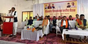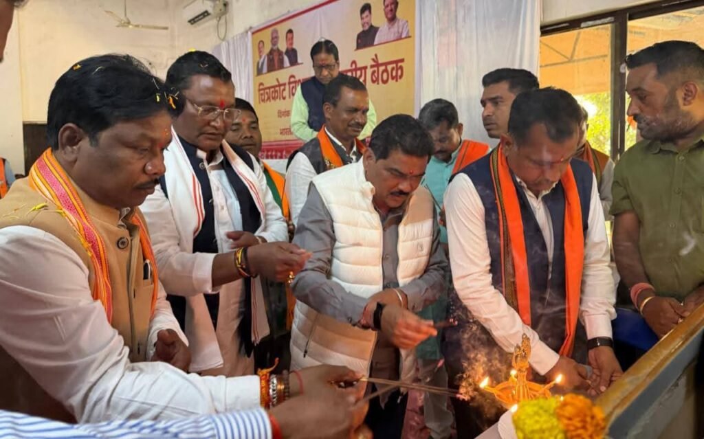 भारतीय जनता पार्टी द्वारा अपने कार्यकर्ताओं की सक्रियता बढा़ने और पार्टी के कार्यक्रमों को गति देने निरंतर बैठकें हो रही है। भाजपा ने आज सोमवार को चित्रकोट लोहण्डीगुड़ा में चित्रकोट विधानसभा स्तरीय बैठक का विशाल आयोजन किया। जिसमें सांसद महेश कश्यप, बस्तर जिला संगठन प्रभारी सतीश लाटिया, भाजपा जिला अध्यक्ष वेदप्रकाश पाण्डेय, विधायक विनायक गोयल प्रमुख रूप से मौजूद रहे। जिन्होंने कार्यकर्ताओं को केन्द्र और प्रदेश की भाजपा सरकार की जनहित की योजनाओं का अधिक से अधिक लाभ ग्रामीण क्षेत्र के लोगों तक पहुँचाने के लिये कहा व जनता से सतत् संपर्क बनाने जोर दिया।