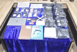 इसके अलावा एंड्राईड मोबाईल फोन 6 नग एवं आईफोन 3 नग, विभिन्न बैंको के एटीएम कार्ड, दो नग ऎसी रजिस्टर जिनमें विभिन्न विभिन्न राज्यों के पॉलिसी धारको का डेटा संग्रहित है, 9 नग जीएसएम वायरलेस फोन, एक नग एयरटेल फाईबर, एक नग