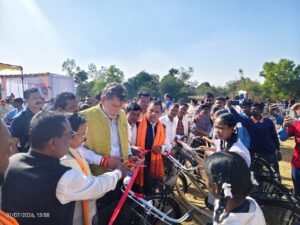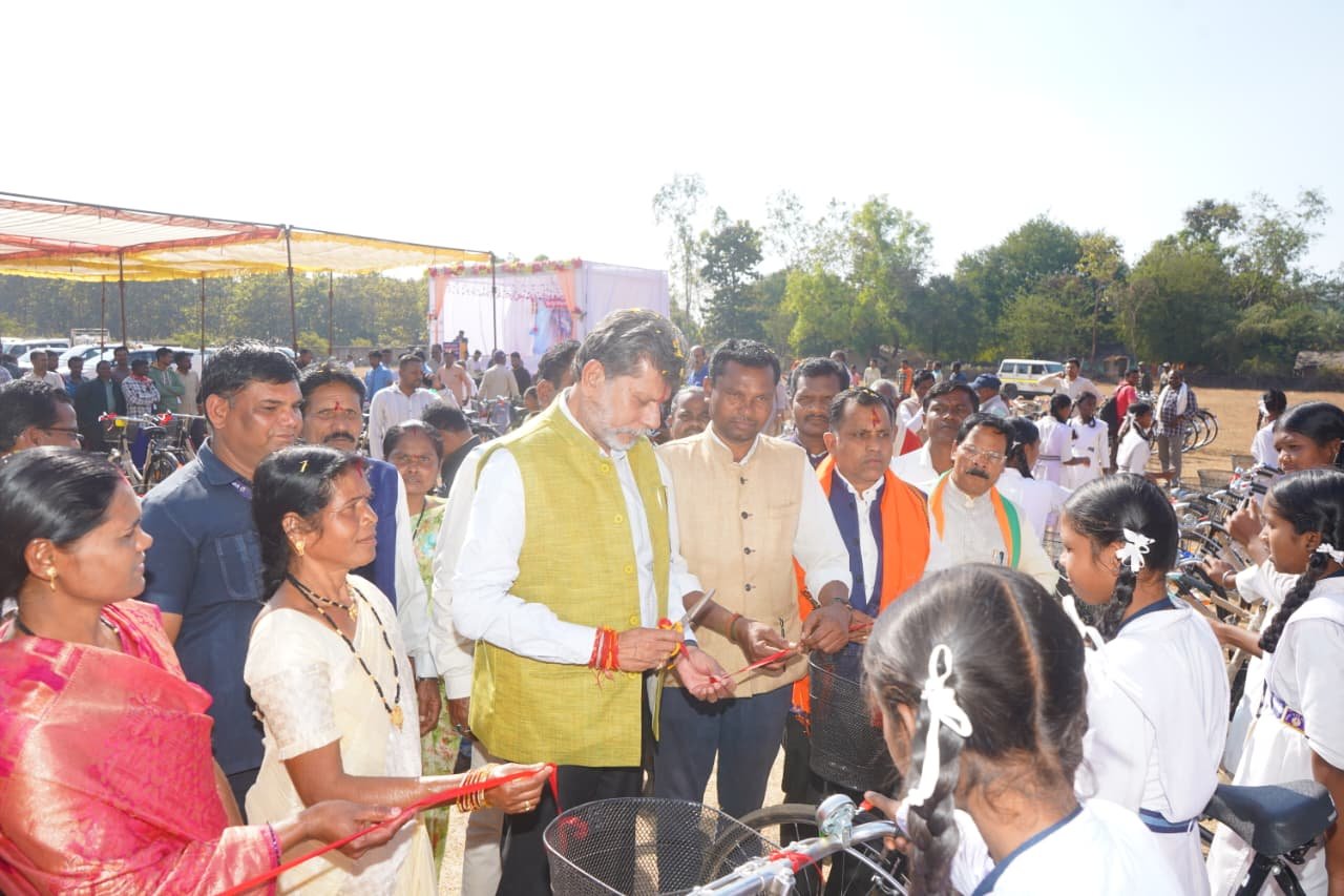 *जगदलपुर।* विधानसभा क्षेत्र जगदलपुर के दरभा मंडल के शासकीय उच्चतर माध्यमिक विद्यालय छिंदबहार, शासकीय हायर सेकंडरी विद्यालय मावलीपदर, नेगानार, तीरथगढ़, कोलेंग, सेजस दरभा, चिंगपाल में भाजपा प्रदेश अध्यक्ष एवं विधायक श्री किरण देव ने 209 छात्राओं को साइकिल वितरण किया।