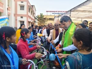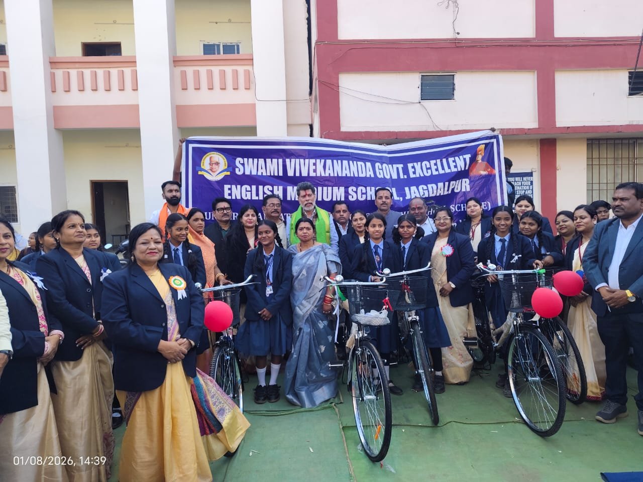 *जगदलपुर।* शहर के स्वामी विवेकानंद उत्कृष्ट शासकीय विद्यालय में आयोजित भव्य समारोह में सरस्वती साइकिल योजना अंतर्गत भाजपा प्रदेश अध्यक्ष एवं विधायक किरण देव ने 455 छात्राओं को साइकिल वितरण किया।