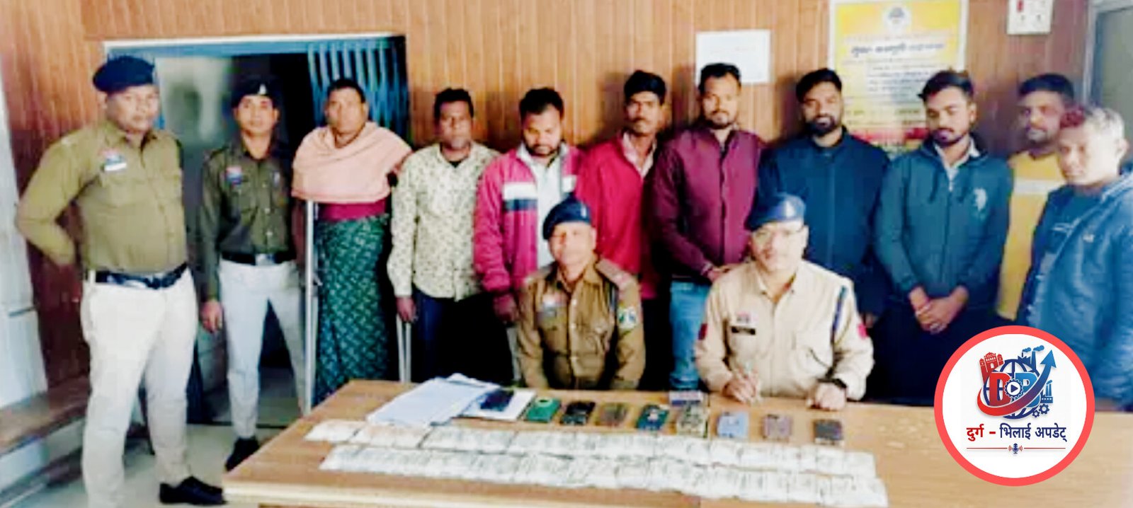 पुलिस को मुखबिर से सूचना मिली थी कि उक्त स्थान पर कुछ लोग हार-जीत की बाजी लगाकर ‘काटपत्ती’ नामक जुआ खेल रहे हैं। सूचना मिलते ही थाना प्रभारी डभरा के नेतृत्व में पुलिस टीम ने यातायात शाखा और साइबर सेल के सहयोग से घेराबंदी कर दबिश दी। कार्रवाई के दौरान मौके से 9 जुआरियों को रंगे हाथों पकड़ लिया गया, जबकि 8 अन्य आरोपी पुलिस को देखकर अपनी मोटरसाइकिलें छोड़कर फरार हो गए।