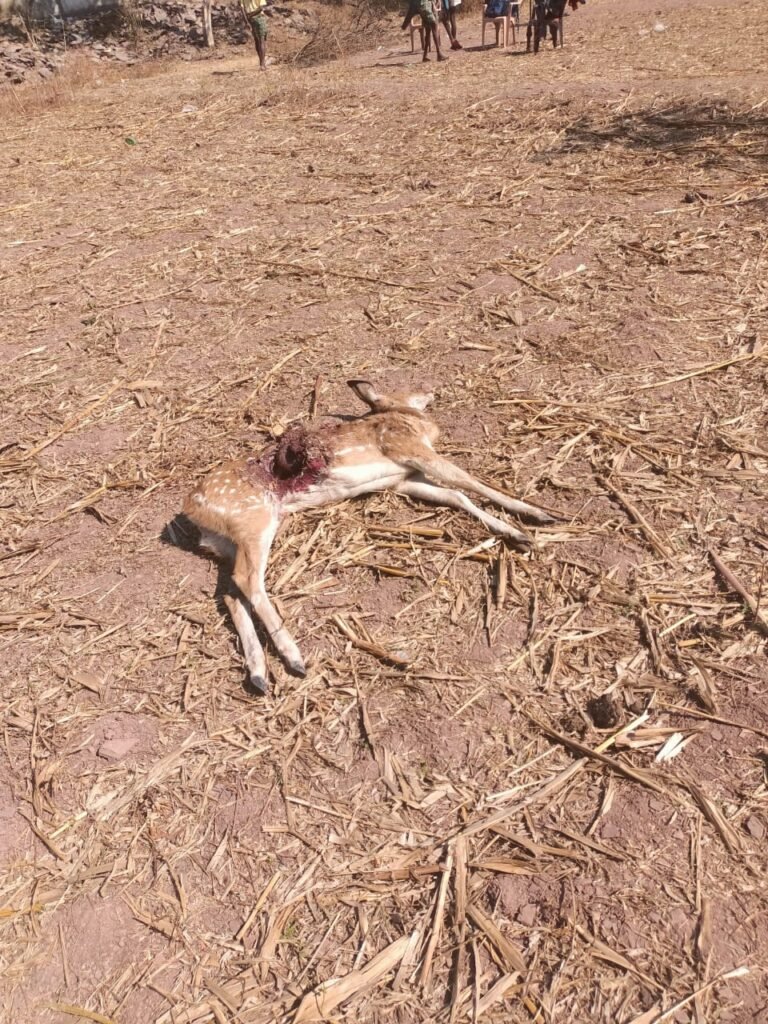 *जगदलपुर।* ग्राम सालेमेटा-2 के जुनागुड़ा पारा की बाड़ी में आकर एक हिरण का किसी जंगली जानवर ने शिकार किया है। जंगली जानवर के पंजों के निशान के आधार पर उसके शेर होने की संभावना व्यक्त की जा रही है।