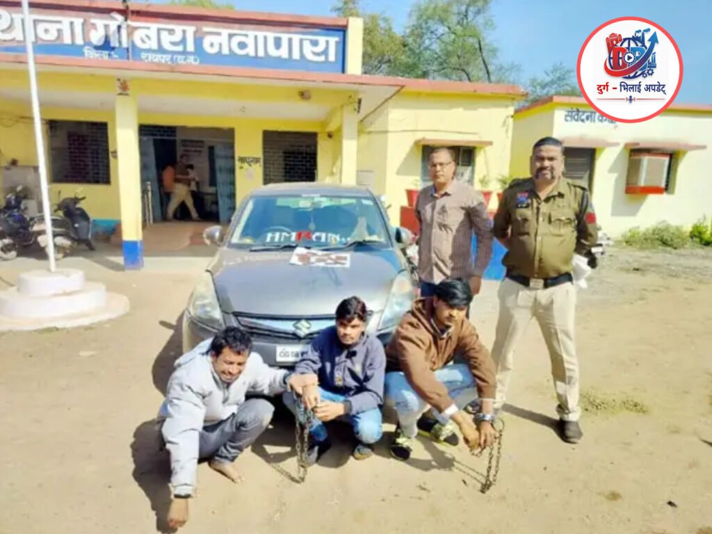 सूचना पर अतिरिक्त पुलिस अधीक्षक नवा रायपुर विवेक शुक्ला एवं नगर पुलिस अधीक्षक तुलसीराम लेकाम के मार्गदर्शन में थाना प्रभारी गोबरानवापारा के नेतृत्व में टीम ने मौके पर घेराबंदी कर वाहन को रोका। वाहन में सवार तीन व्यक्तियों ने पूछताछ में अपना नाम आशीष निर्मलकर, अरमान अहमद एवं किशोर यादव उर्फ पप्पू बताया।