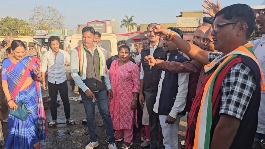 बस्तर जिले के दंतेवाड़ा जिले की व्यापार नगरी गीदम में राजनीतिक फिजा बदरंग हो गई है। सरकार पर लगातार हमलावर कांग्रेस कार्यकर्ताओं ने भाजपा जिलाध्यक्ष का पुतला दहन किया। बस स्टैंड में किए गए प्रदर्शन में बड़ी संख्या में कांग्रेस कार्यकर्ताओं ने जमकर नारेबाज़ी की। कांग्रेस नेताओं का आरोप है कि गीदम क्षेत्र में लगातार अपराध, मारपीट और गुंडागर्दी की घटनाएं बढ़ रही हैं, जिसके लिए सीधे तौर पर भाजपा जिम्मेदार है। कांग्रेस ने भाजपा जिला अध्यक्ष पर बुजुर्ग सर्राफा व्यापारी के साथ मारपीट का आरोप लगाते हुए कहा कि कड़ी कार्रवाई नहीं होने पर प्रदर्शन जारी रहेगा।पुतला दहन की सूचना मिलते ही पुलिस मौके पर पहुंची और स्थिति को नियंत्रित किया।