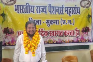 *सुकमा।* भारतीय राज्य पेंशनर्स महासंघ छत्तीसगढ़ प्रदेश के तत्वावधान में सुकमा जिले के पेंशनरों की एक महत्वपूर्ण बैठक प्रांताध्यक्ष वीरेंद्र नामदेव की अध्यक्षता में हुई। बैठक में सुकमा जिले की नई कार्यकारिणी का गठन किया गया। कसीमुद्दीन को जिला अध्यक्ष, अल्फ्रेड सूना को सचिव, रामकुमारी नेताम को उपाध्यक्ष तथा प्रभाकर दास को कोषाध्यक्ष नियुक्त किया गया।