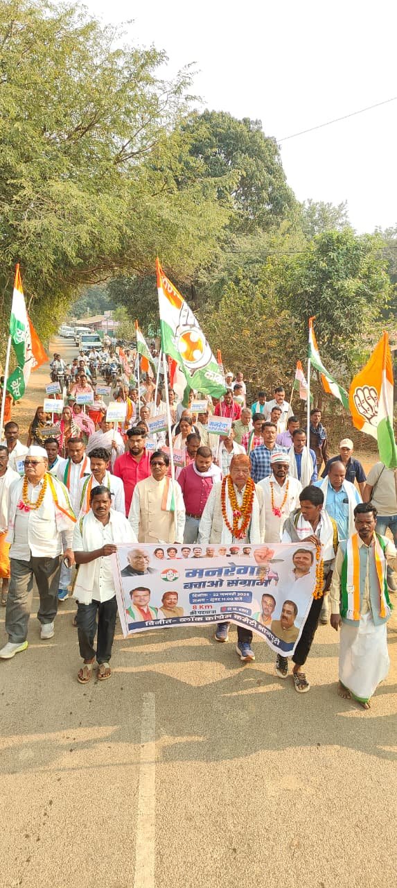 *जगदलपुर।* कांग्रेस ने मनरेगा बचाओ संग्राम के तहत बस्तर जिले के भानपुरी ब्लॉक के ग्रामीण क्षेत्रों में पंचायत स्तरीय जनसंपर्क पदयात्रा चपका से ग्राम कुम्हली तक निकाली।