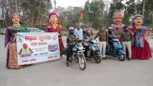 राष्ट्रीय सड़क सुरक्षा माह-2026 के अंतर्गत दुर्ग पुलिस द्वारा आम नागरिकों को यातायात नियमों के प्रति जागरूक करने के लिए लगातार अभिनव कार्यक्रम आयोजित किए जा रहे हैं। इसी कड़ी में शुक्रवार को कठपुतली कला के माध्यम से एक अनोखा जागरूकता अभियान चलाया गया।