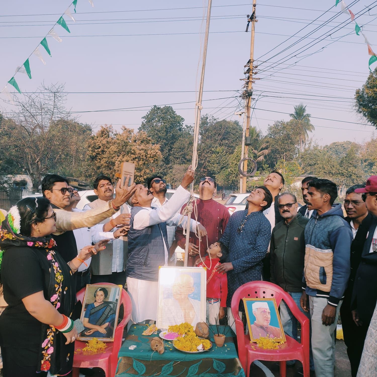*दल्ली राजहरा।* 77वें गणतंत्र दिवस पर ब्लॉक कांग्रेस कमेटी दल्ली राजहरा द्वारा स्थानीय कांग्रेस भवन में हर्षोल्लास के साथ समारोह आयोजित किया गया। कार्यक्रम में मुख्य अतिथि के रूप में ब्लॉक कांग्रेस अध्यक्ष रतिराम कोसमा ने विधिवत ध्वजारोहण कर तिरंगे को सलामी दी।
