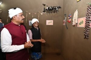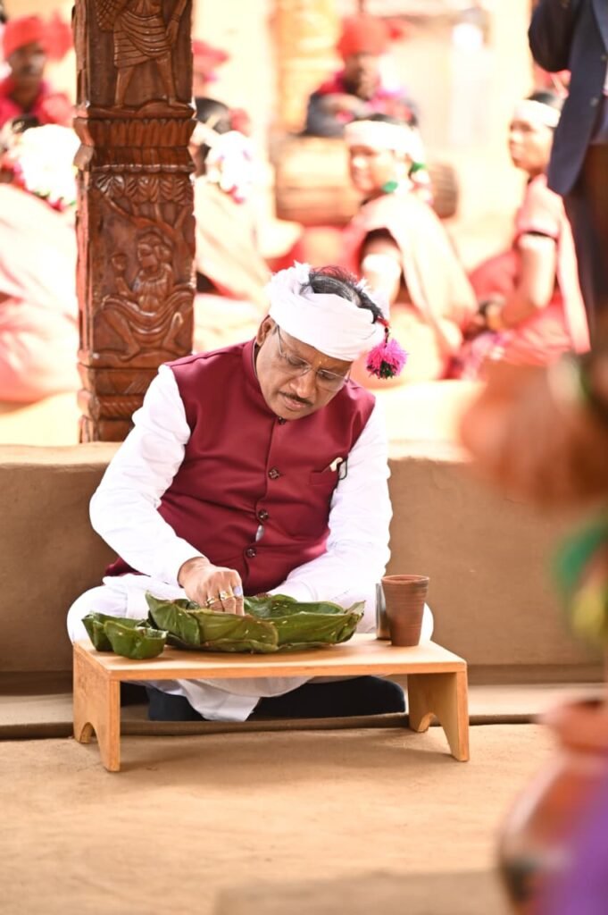 *जगदलपुर।* मुख्यमंत्री विष्णुदेव साय ने बस्तर संभाग के नारायणपुर प्रवास के दौरान गढ़बेंगाल घोटुल में बस्तर की गौरवशाली परंपराओं और लोक संस्कृति के प्रति अपनी गहरी प्रतिबद्धता प्रदर्शित की। पारंपरिक वाद्ययंत्रों की मधुर ध्वनि और ग्रामीणों के आत्मीय स्वागत के बीच मुख्यमंत्री स्वयं लोक रंग में रंगे नजर आए। इस दौरान उन्होंने घोटुल की अनूठी स्थापत्य कला का अवलोकन किया और बस्तर की विभूतियों से मुलाकात कर उनका उत्साहवर्धन किया। वन विभाग और पद्मश्री पंडीराम मंडावी के मार्गदर्शन में निर्मित गढ़ बेंगाल का घोटुल पूर्णतः इको-फ्रेंडली है और लकड़ी, मिट्टी तथा बांस आदि प्राकृतिक सामग्री से बना है। मुख्यमंत्री ने घोटुल के खंभों पर की गई सूक्ष्म नक्काशी की मुक्तकंठ से प्रशंसा की। यह नक्काशी स्वयं पद्मश्री पंडीराम मंडावी ने उकेरी है।