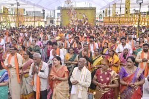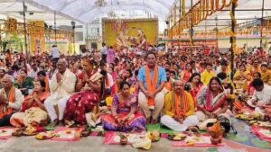श्री रामा चारलू आचार्य एवं उनके साथ पधारे पंडितों के समूह द्वारा विधि-विधान से भगवान सत्यनारायण कथा का वाचन किया गया। इस पावन अनुष्ठान में 380 जोड़ों ने सामूहिक रूप से पूजन-अर्चन कर पुण्य लाभ अर्जित किया। सर्वप्रथम भगवान श्री गणेश जी का आह्वान किया गया, तत्पश्चात समस्त देवी-देवताओं का आह्वान कर कथा के पांच अध्यायों का वाचन किया गया। प्रत्येक अध्याय के पश्चात भगवान के श्री चरणों में पूजन सामग्री अर्पित की जाती रही। पूजन उपरांत आयोजित महाभंडारे में लगभग 5000 श्रद्धालुओं ने भोजन प्रसाद ग्रहण किया। श्रद्धालुओं की सेवा में मंदिर समिति, आंध्र समाज एवं स्वयंसेवक पूरे समर्पण भाव से जुटे रहे।