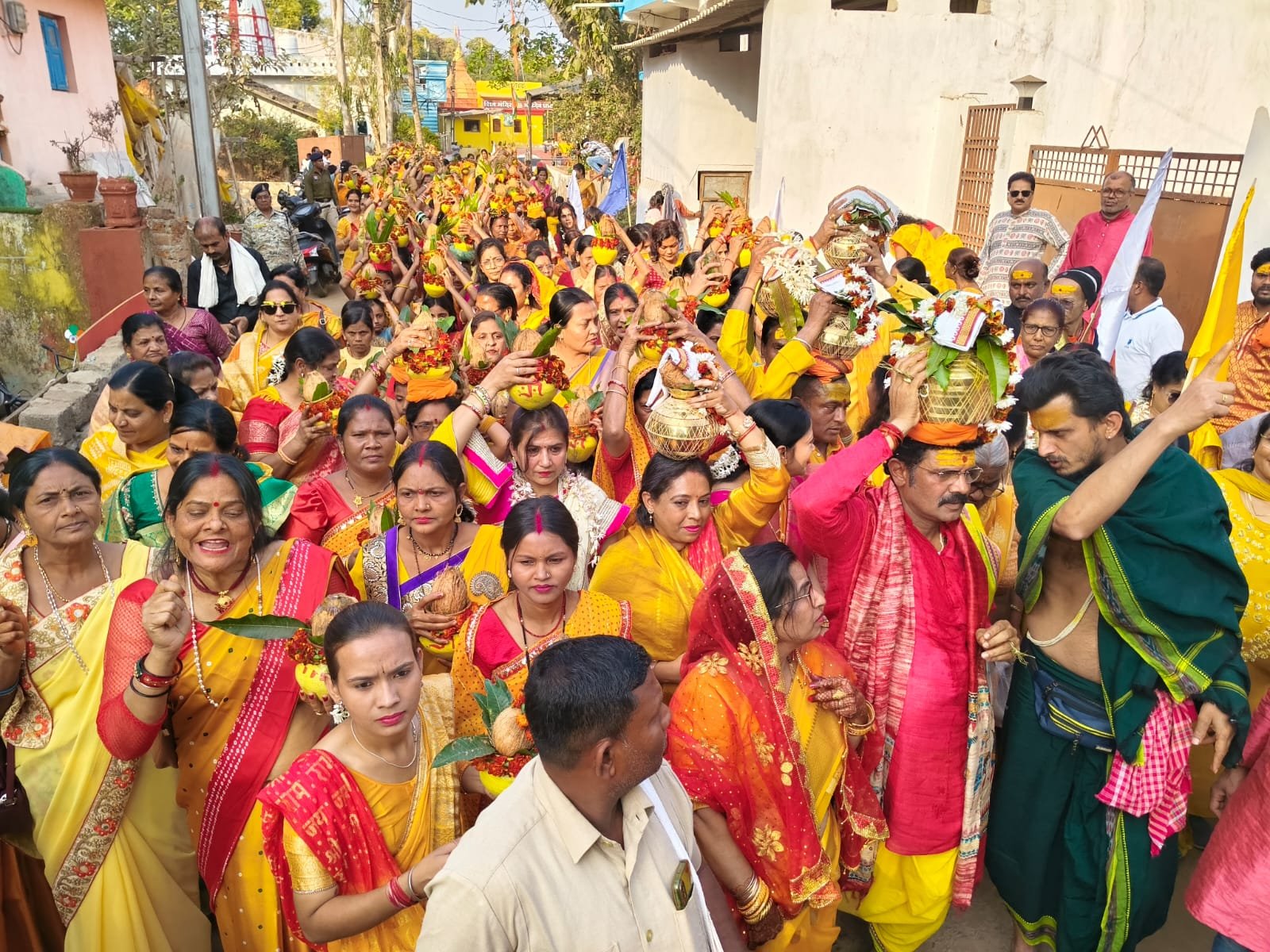 काया शुद्धि व दीक्षाग्रहण पूजा के बाद महादेव घाट में वैदिक रीति-रिवाजों के साथ कलश पूजन किया गया, जिसके बाद भव्य कलश यात्रा निकाली गई। सिर पर कलश धारण कर महिलाओं व श्रद्धालुओं ने नगर के प्रमुख मार्गों से होते हुए भगवान भोलेनाथ के जयकारों के साथ यात्रा निकाली। कलश यात्रा के दौरान पूरा वातावरण भक्तिमय हो उठा। कलश यात्रा का समापन श्री ओंकारेश्वर मंदिर में हुआ।