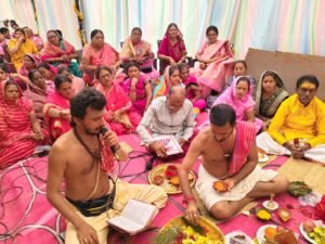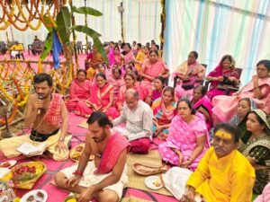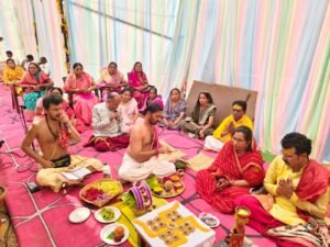 इस अवसर पर आचार्यों ने बताया कि शास्त्रों में देव कार्य से भी पितृ कार्य को श्रेष्ठ माना गया है। तत्पश्चात यजमानों एवं आचार्यों को रक्षा सूत्र बांधकर यज्ञ विधि की पूजा संपन्न कराई गई। अंत में सभी देवी-देवताओं का स्थापना पूजन कर आरती एवं पुष्पांजलि अर्पित की गई, जिसके साथ दूसरे दिन का यह पावन कार्यक्रम भक्ति एवं श्रद्धा के वातावरण में संपन्न हुआ।