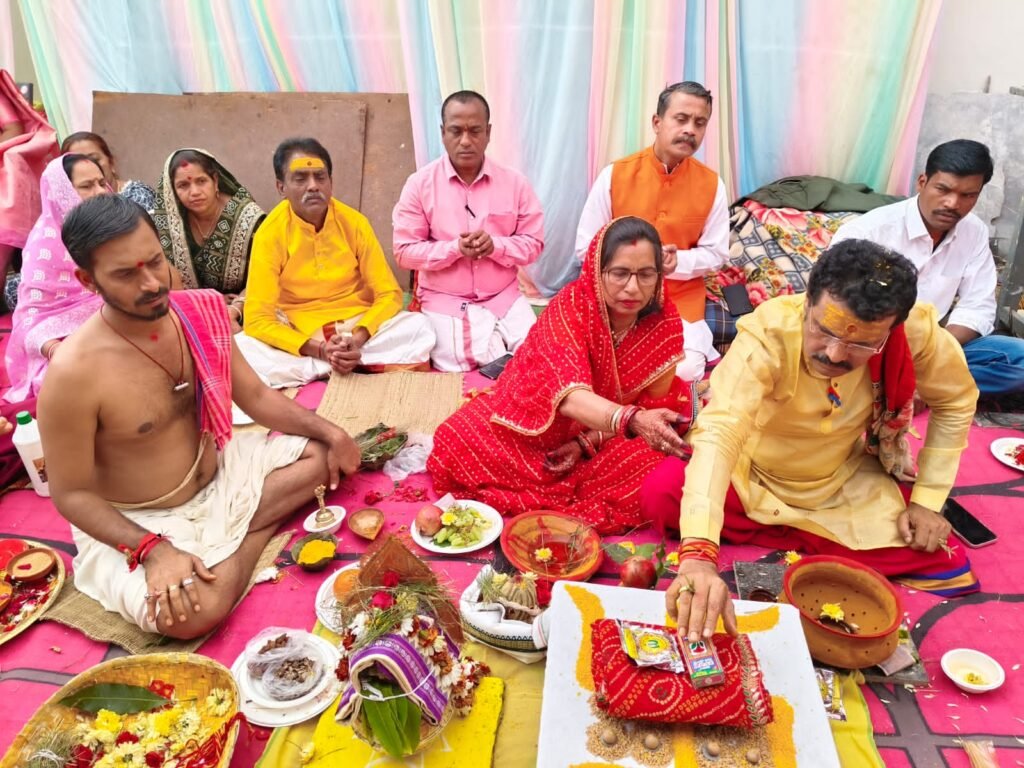 कार्यक्रम की शुरुआत सर्वप्रथम समस्त श्रद्धालुओं के आरोग्य एवं कल्याण की कामना के साथ सुबह सूर्य नमस्कार एवं भगवान सूर्य की आराधना से की गई। वैदिक मंत्रोच्चारण के बीच भगवान भास्कर की उपासना कर समस्त नगरवासियों के उत्तम स्वास्थ्य हेतु प्रार्थना की गई। इसके पश्चात सर्व देवों में श्रेष्ठ मानी जाने वाली गौ माता का विधिवत पूजन किया गया। मुख्य यजमान संजय पाण्डेय एवं श्रीमती रेखा पाण्डेय सहित सभी भक्तगणों ने श्रद्धा भाव से गौ पूजा संपन्न कराई। वैदिक मंत्रों के माध्यम से गौ माता के प्रत्येक अंग में निवास करने वाले विभिन्न देवी-देवताओं का विधि पूर्वक पूजन किया गया। इस अवसर पर उपस्थित सभी श्रद्धालुओं द्वारा गौ माता को गो-ग्रास अर्पित किया गया। यज्ञ आचार्यों ने गौ पूजा के महत्व पर प्रकाश डालते हुए बताया कि केवल मंत्रों से ही गौ सेवा का पुण्य प्राप्त नहीं होता, बल्कि प्रतिदिन श्रद्धा भाव से घर का शुद्ध एवं प्रथम बना भोजन अथवा पहली रोटी गौ माता को अर्पित करना अत्यंत पुण्यदायी होता है। उन्होंने स्पष्ट किया कि घर का बचा हुआ या जूठा भोजन कभी भी गाय को नहीं खिलाना चाहिए। आचार्यों ने सभी से गौ संरक्षण एवं सेवा के लिए निरंतर प्रयास करने का आह्वान किया। उन्होंने बताया कि गौ माता में 33 कोटि देवी-देवताओं का वास होता है, इसलिए जो व्यक्ति सच्चे मन से गौ माता की सेवा एवं पूजन करता है उसकी समस्त मनोकामनाएं पूर्ण होती हैं। गौ पूजा के उपरांत सभी श्रद्धालुओं द्वारा यज्ञ मंडप के पश्चिमी भाग में गौरी-गणेश का विधि-विधान से पूजन किया गया। यज्ञ आचार्यों ने सभी वार्डवासियों, जगदलपुर नगर के समस्त नागरिकों के सुख, शांति एवं समृद्धि के साथ-साथ सनातन धर्म के प्रति श्रद्धालुओं की आस्था एवं भक्ति वृद्धि हेतु विशेष पूजन का संकल्प कराया।