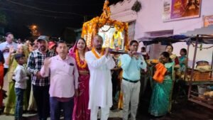 देवी भागवत महापुराण के दौरान पांचवें दिन मां कुष्मांडा की झांकी प्रस्तुत की गई, वहीं मां कुष्मांडा को पालकी में बिठाकर नगर भ्रमण कराया गया। इसके पहले योगमाया और कृष्ण जन्मोत्सव मनाया गया। इस मौके पर नगर के दो बच्चों ने सनातन पद्धति से अपना जन्मोत्सव मनाया। सैकड़ो लोगों ने इन बच्चों को अपना आशीष दिया।