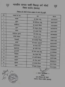 दल्लीराजहरा :- भारतीय जनता पार्टी के प्रदेशाध्यक्ष किरण सिंहदेव एवं प्रदेश महामंत्री (संगठन) पवन साय जी के मार्गदर्शन में भाजपा पिछडा वर्ग मोर्चा के प्रदेशाध्यक्ष अशोक साहू जी के निर्देशानुसार एवं भाजपा चेमन देशमुख के सहमति से भाजपा पिछड़ा वर्ग मोचा जिलाध्यक्ष श्याम जायसवाल द्वारा पिछड़ा वर्ग मोर्चा की जिला कार्यसमिति एवं मंडल अध्यक्षों की सूची घोषणा की गई, जो निम्नानुसार है।